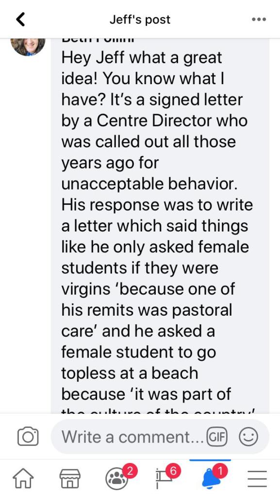 I had complained about Jeff’s sexual harassment and inappropriate behaviour just under 30 years ago. I knew that there were other woman who complained. I really didn’t want to have to do a big disclosure and expose everything again so many years later. I’m also not a malicious person. I felt like I had made my peace with this years ago and I had never any intention of looking for Jeff or calling him out. I had seen his name around over the years – giving talks and so on… once at the Quaker Centre in Birmingham which saddened me greatly as I knew many people there. But to be honest, I wanted to forget the whole thing and leave it behind. I had done what I needed to do at the time and I hoped he had learnt something too. I also knew what a struggle it was to be heard and I didn’t see the point of putting myself through all this.